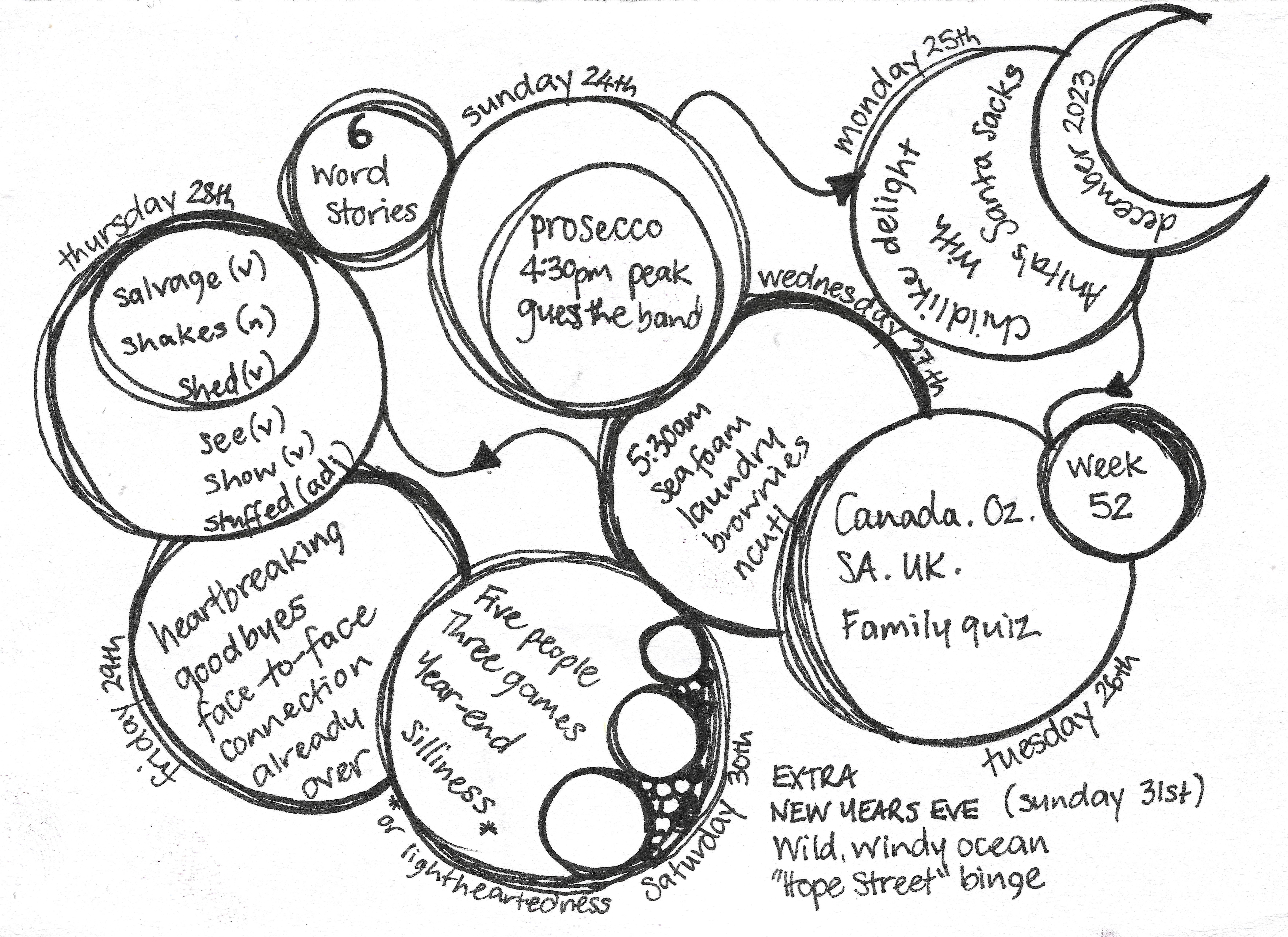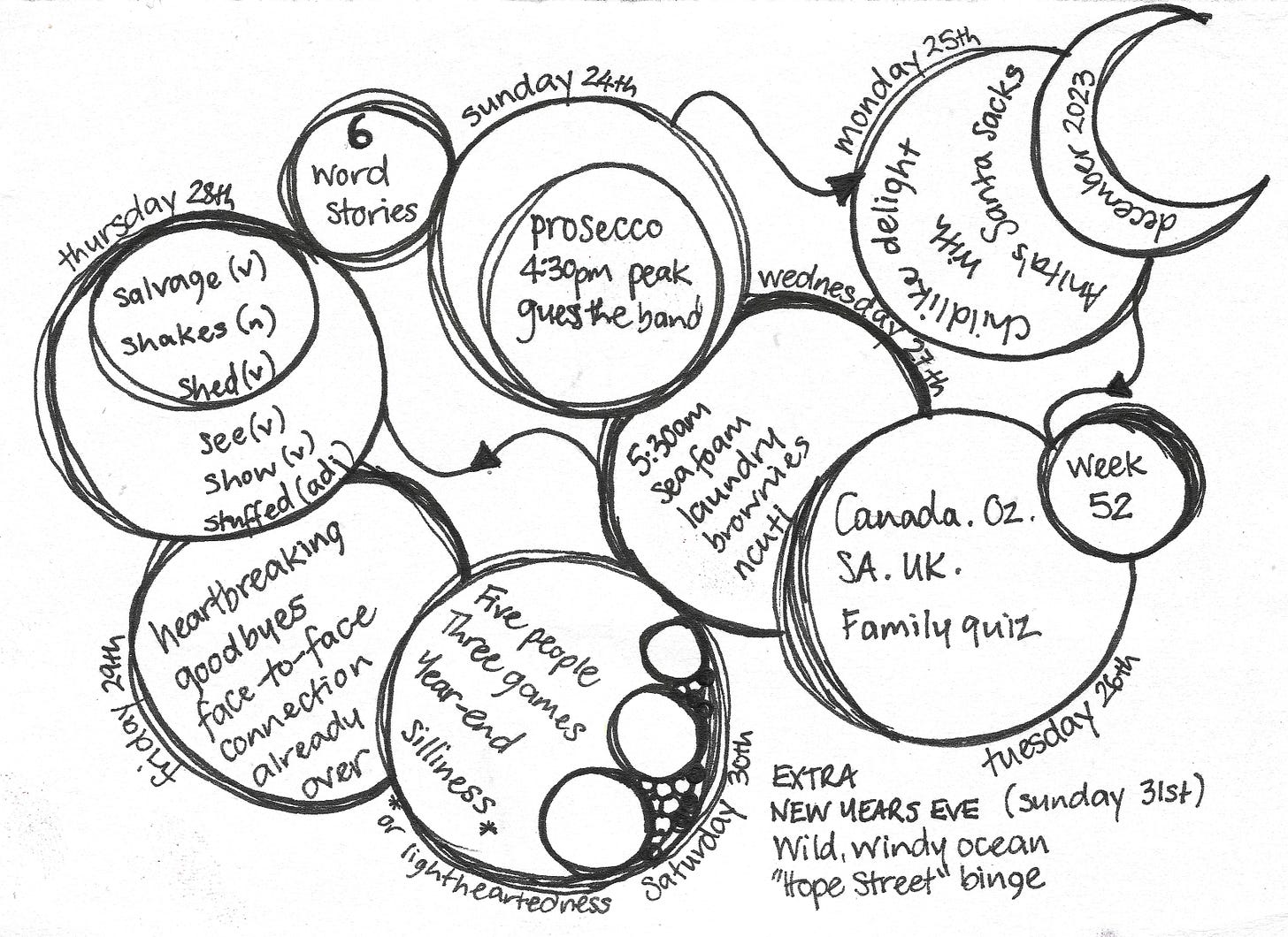 I started writing some six word stories last year as a test run - here’s an example of a weekly map ⬇️ with the seven little stories (plus one extra for the 31st December).