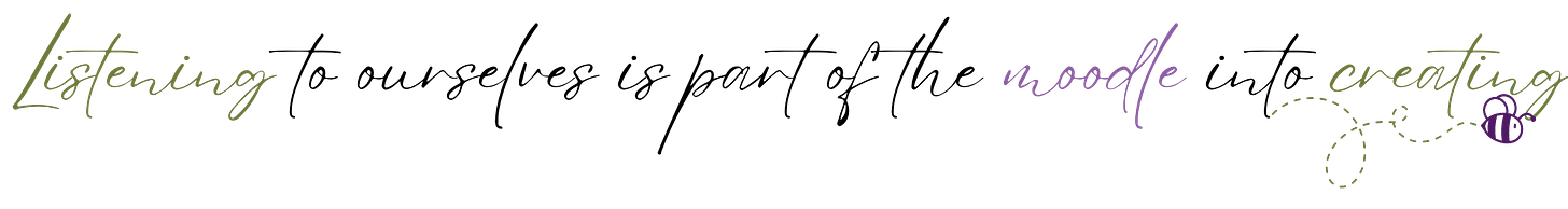 For me, this "listening" to ourselves and maybe to something bigger than ourselves (God, the Universe, Spirit, a Higher Power, your Inner Intuition, the Muse, your Higher Self, whatever or whoever you connect to) on a deep level, is a moodle through the incubation stage of the creative process that many people write about.